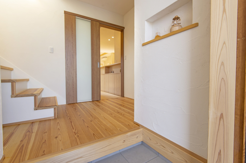 十津川村産の木材や漆喰塗りの壁など、自然素材をふんだんにつかった家づくりに共感し「和で家を建てたい」とご依頼をいただきました。