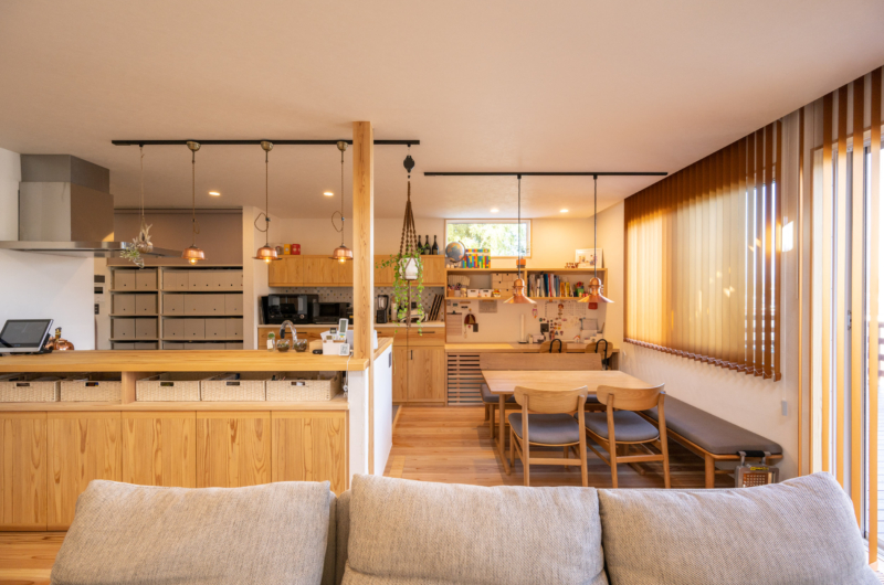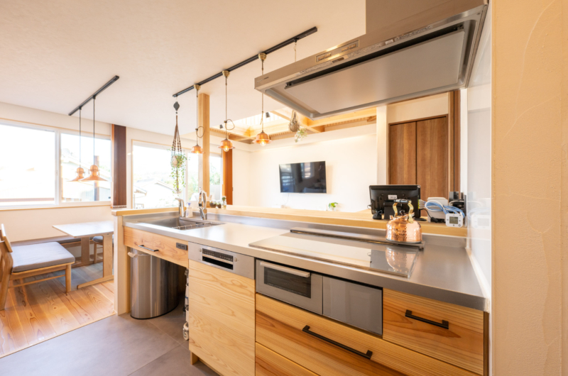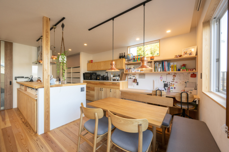 収納するものに合わせた食器棚やカウンターなど、お家のテイストに合った家具が統一感を生み出している。