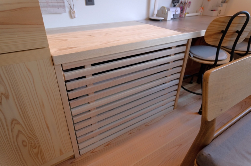 スタディーカウンターの格子扉の中にエアコンを設置。