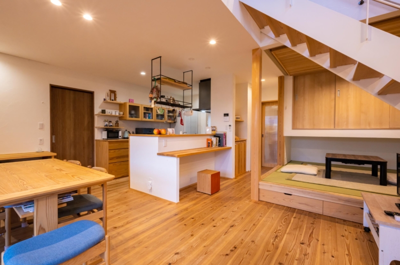 このお家に住み始めて2年、木の趣があふれるシンプルながら秋の来ないデザインと快適で生活しやすい間取りに「毎日がたのしい」とご家族全員が木の家での暮らしを満喫されていました。