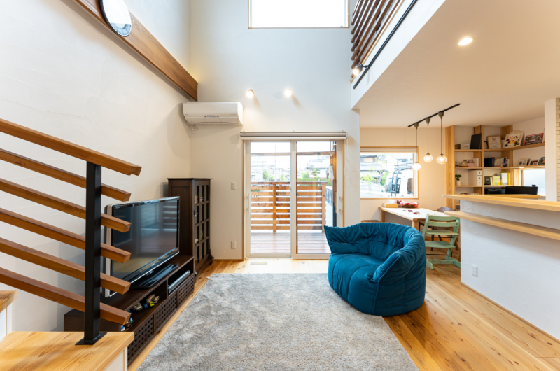 明るく開放的な吹き抜けを中心としたLDKには、