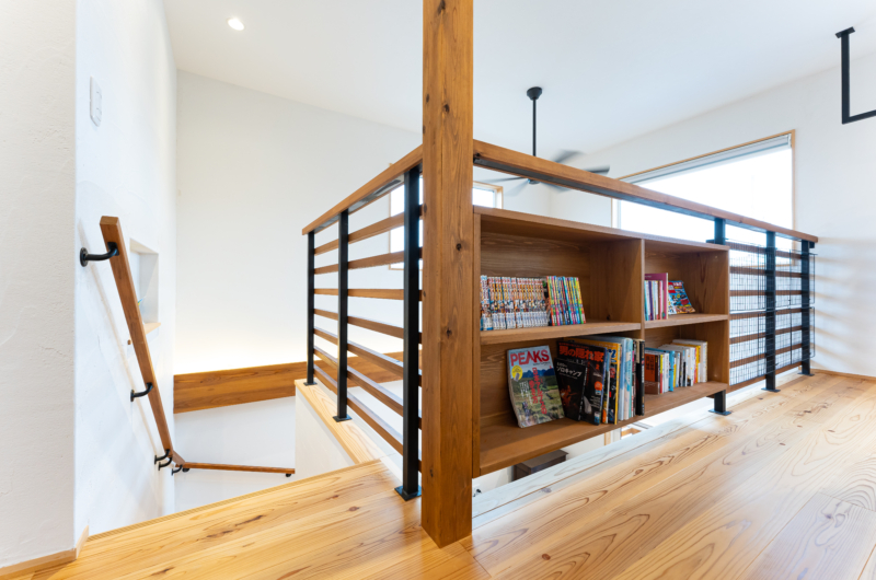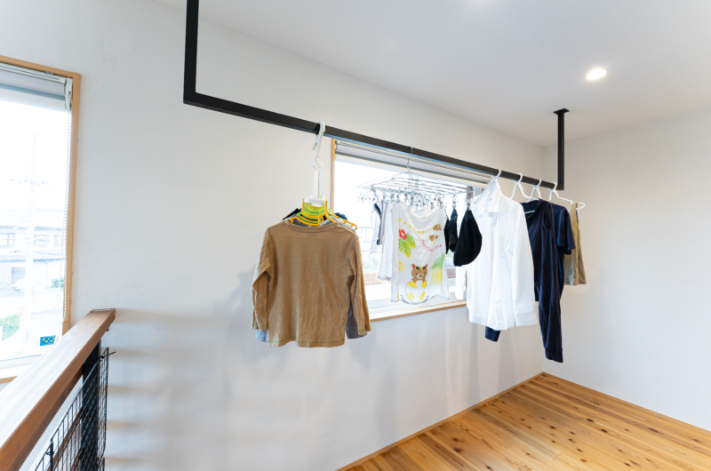 リビング階段を上がった2階南側のフリースペースは洗濯物が干せる空間。