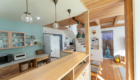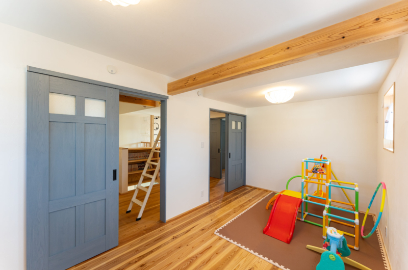 室内は無垢材の床をベースに、ブルーをアクセントとして取り入れ、