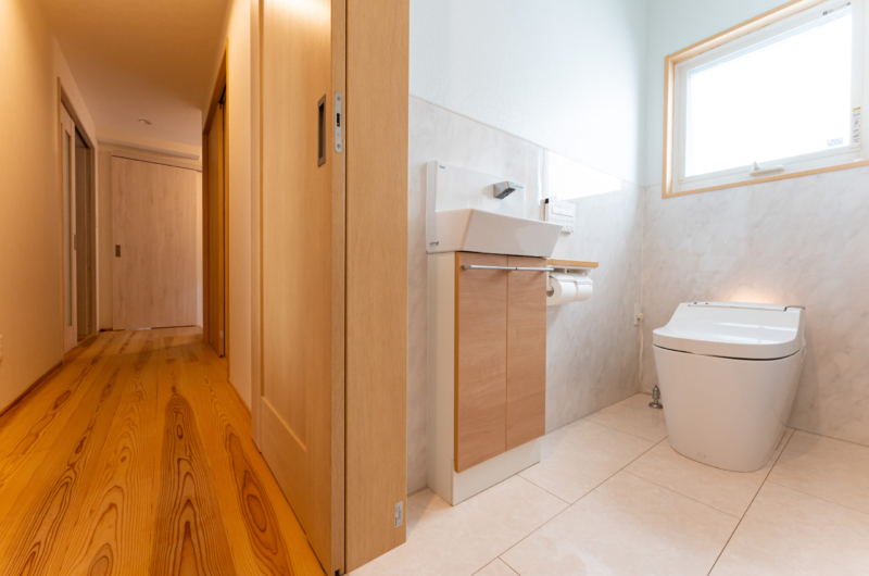今回、本家と離れを繋げ、水まわりを一直線上に配置したことでトイレや水まわり、