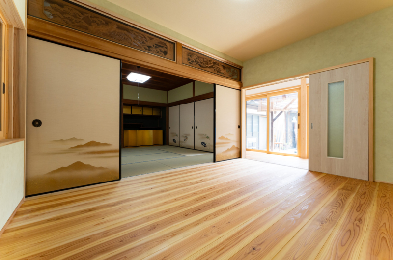 以前はふすまで間仕切っていた和室にあえて壁を設けて耐震性をアップ。